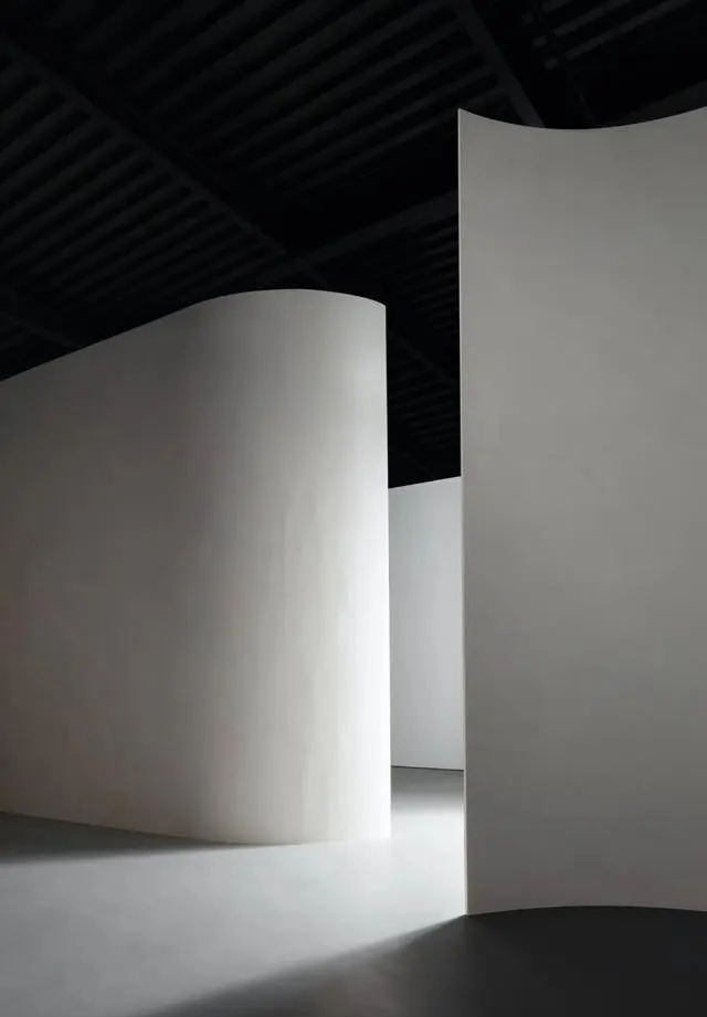 我們運用波浪形的墻壁來劃分空間,有利于引領(lǐng)看展人從一個空間移動到另一側(cè)空間。
