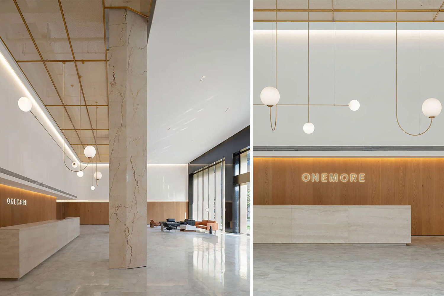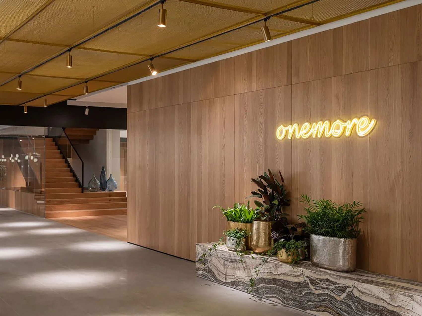 ONEMORE的總部辦公空間,不僅從空間營造上找到了能夠適應(yīng)當(dāng)下工作氛圍的方法,也為研究“聚集性空間的消解與轉(zhuǎn)化”提供了一種前瞻性的思考。將空間設(shè)計的重心放在了“尋找辦公歸屬感”和“多互動的環(huán)保有氧空間上的設(shè)計理念上”,為品牌打造一個能激發(fā)更大協(xié)作意識和創(chuàng)造力的空間。
