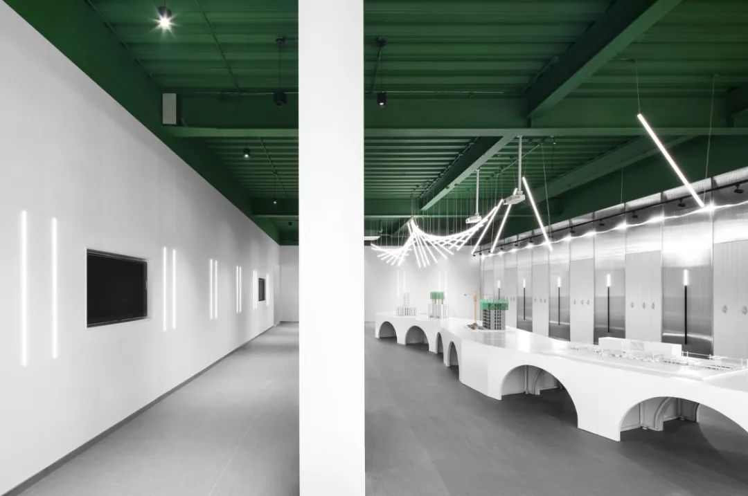 項(xiàng)目位置在蘇州市,裝配式建筑作為未來的建筑文化表達(dá)方式,于其展廳,設(shè)計(jì)希望借由園林的意象表達(dá)新科技的文化傳播特性,從而突出展廳所在地的地域名片,也能賦予空間傳統(tǒng)與未來的戲劇沖突感。
