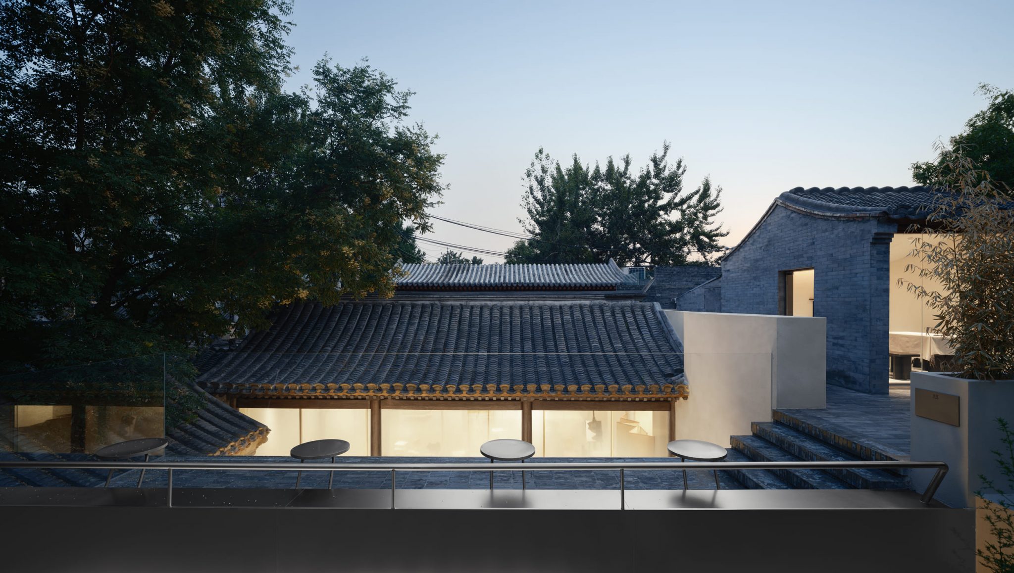 傳統(tǒng)四合院基于尊卑、長幼、內(nèi)外等禮法因素而劃定的線性流線被調(diào)整為開放的自由平面,鳥瞰視角下,最終所呈現(xiàn)的空間更像是由一個(gè)個(gè)屋頂、天井、柱陣組成的功能和情緒場域。