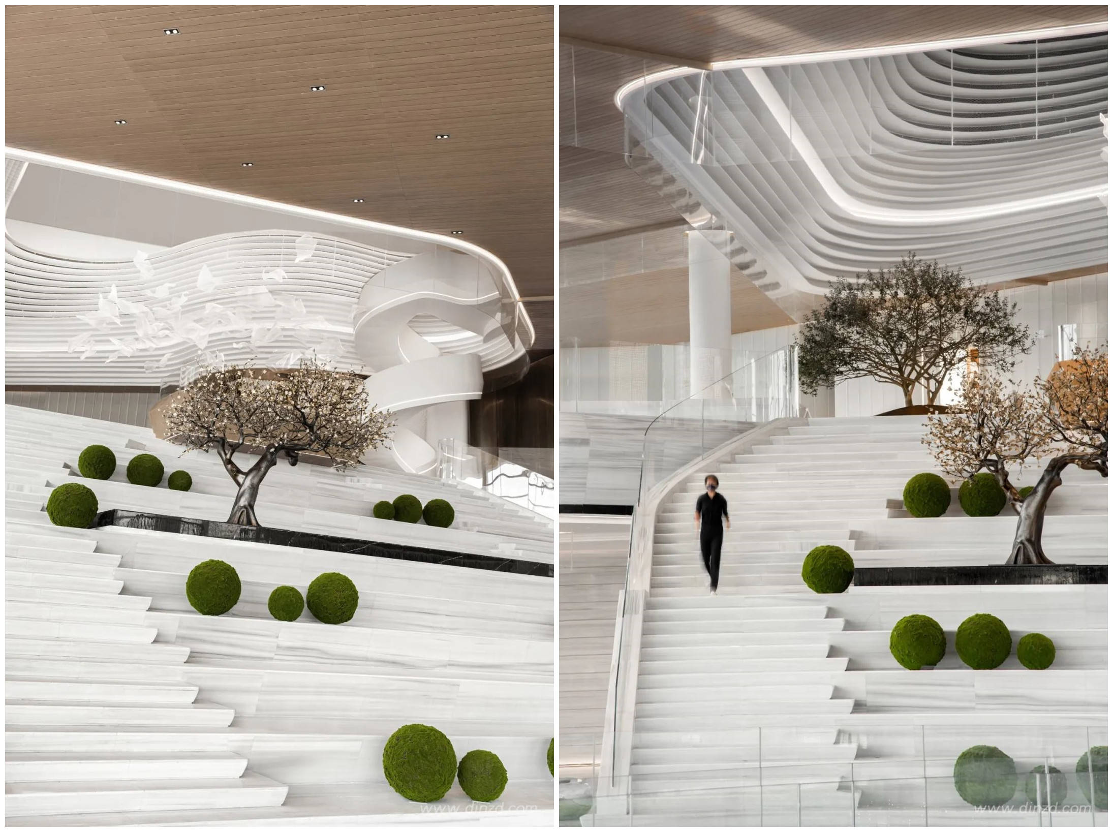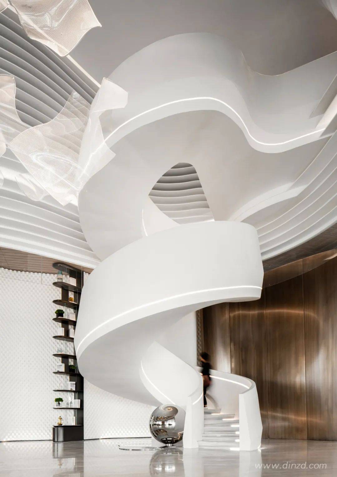 下面分享一例創(chuàng)新科技展廳設(shè)計(jì),設(shè)計(jì)師突出了空間的“共享性”,使其更加融入城市肌理,一種在社會(huì)角色上不同以往的全新文化空間相應(yīng)而生。