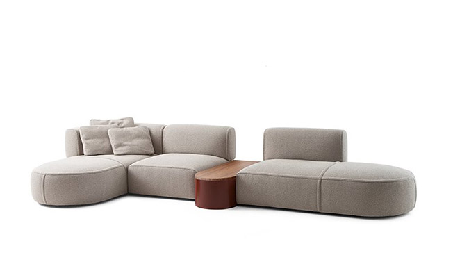 在多個新推出的產(chǎn)品中,藝術總監(jiān)本人設計的“bowy-sofa”無疑是最出彩的一款,這款沙發(fā)展現(xiàn)出高品質的剪裁技術,同時利用沙發(fā)模塊的形式展開實驗,使其具有通用型設計的特性。其形態(tài)極具特色,渾圓的扶手直接與靠背相連,靠背則在座位組件之外浮現(xiàn)出來。圓形、半圓形以及矩形形態(tài)不斷交替轉換,創(chuàng)造出體量與圖形輪廓的游戲。