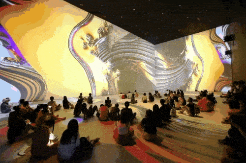在特定的展示空間中,通過定制化的3D內容來詮釋豐富變化的主題,用三面或四面投影墻面來實現(xiàn)沉浸式的包裹體驗,從而營造出一個沉浸式的空間。